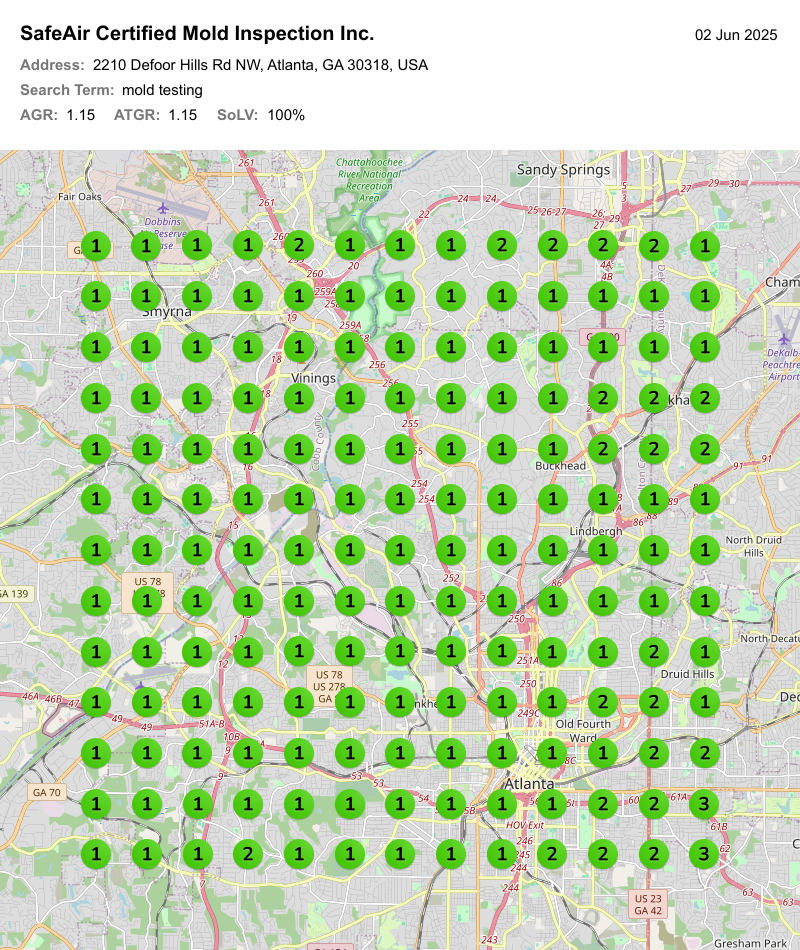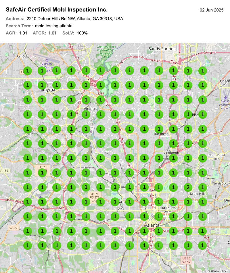 When SafeAir Certified Mold Inspection Inc. first opened its doors, it had no online presence, no existing client base, and zero visibility in the highly competitive indoor air quality market. Operating in Atlanta, Georgia — a region with high demand for mold inspection services — SafeAir needed not just visibility, but authority. Today, it’s the top-ranking company in the region, routinely turning away business due to overwhelming demand. Here’s how we made that happen.